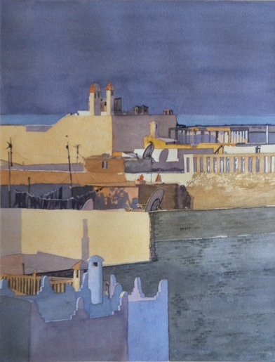 Rooftops in Essaouira, Morocco 30 x 22 watercolor